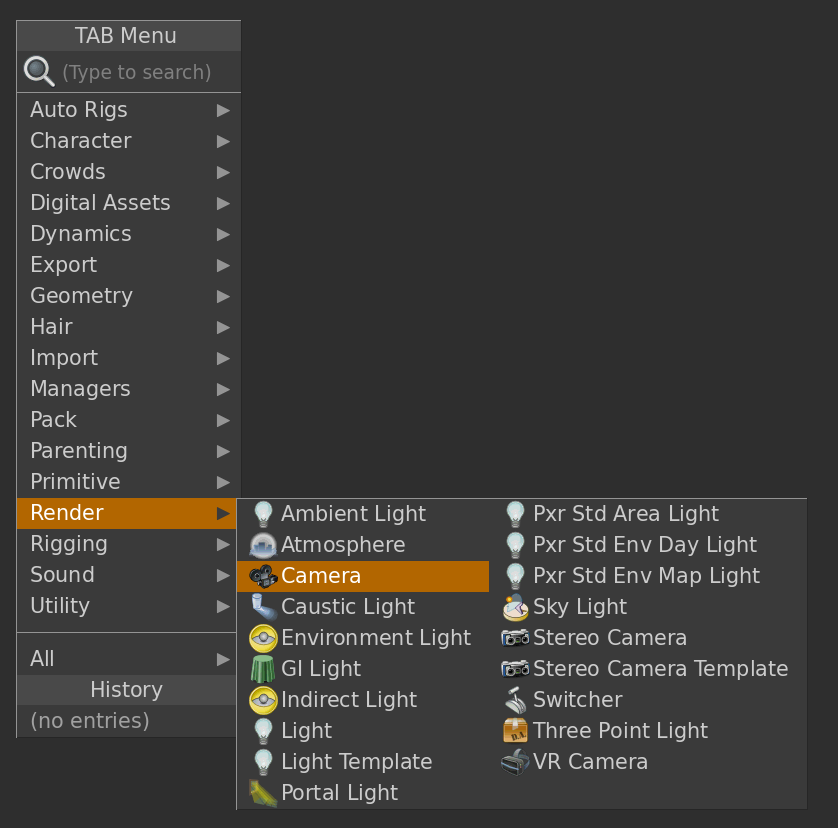 camNode = objNode.createNode('cam', ‘cameraName’)