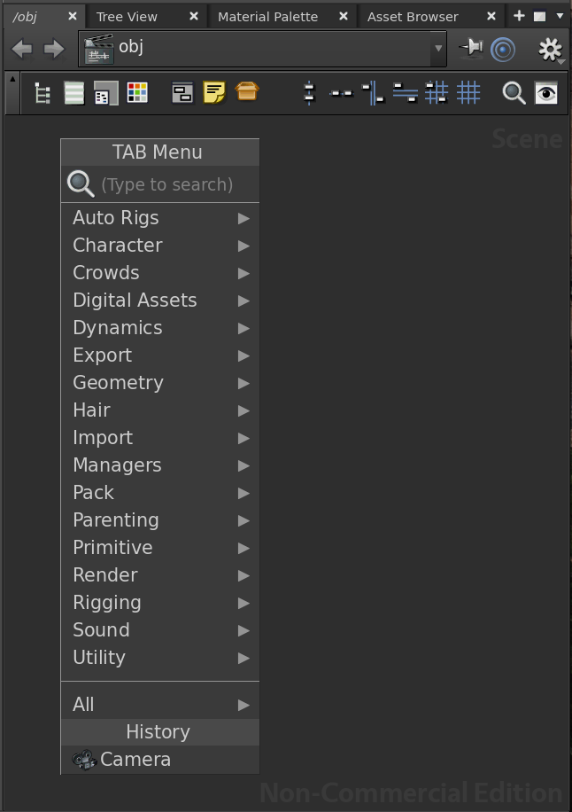 Put your mouse over the Network View window and press the TAB key on your keyboard. This will bring up the TAB Menu.
