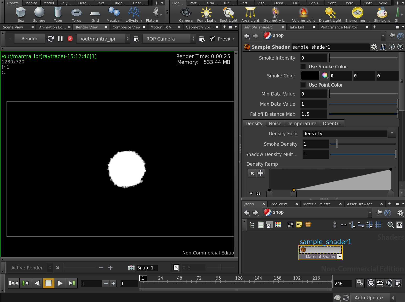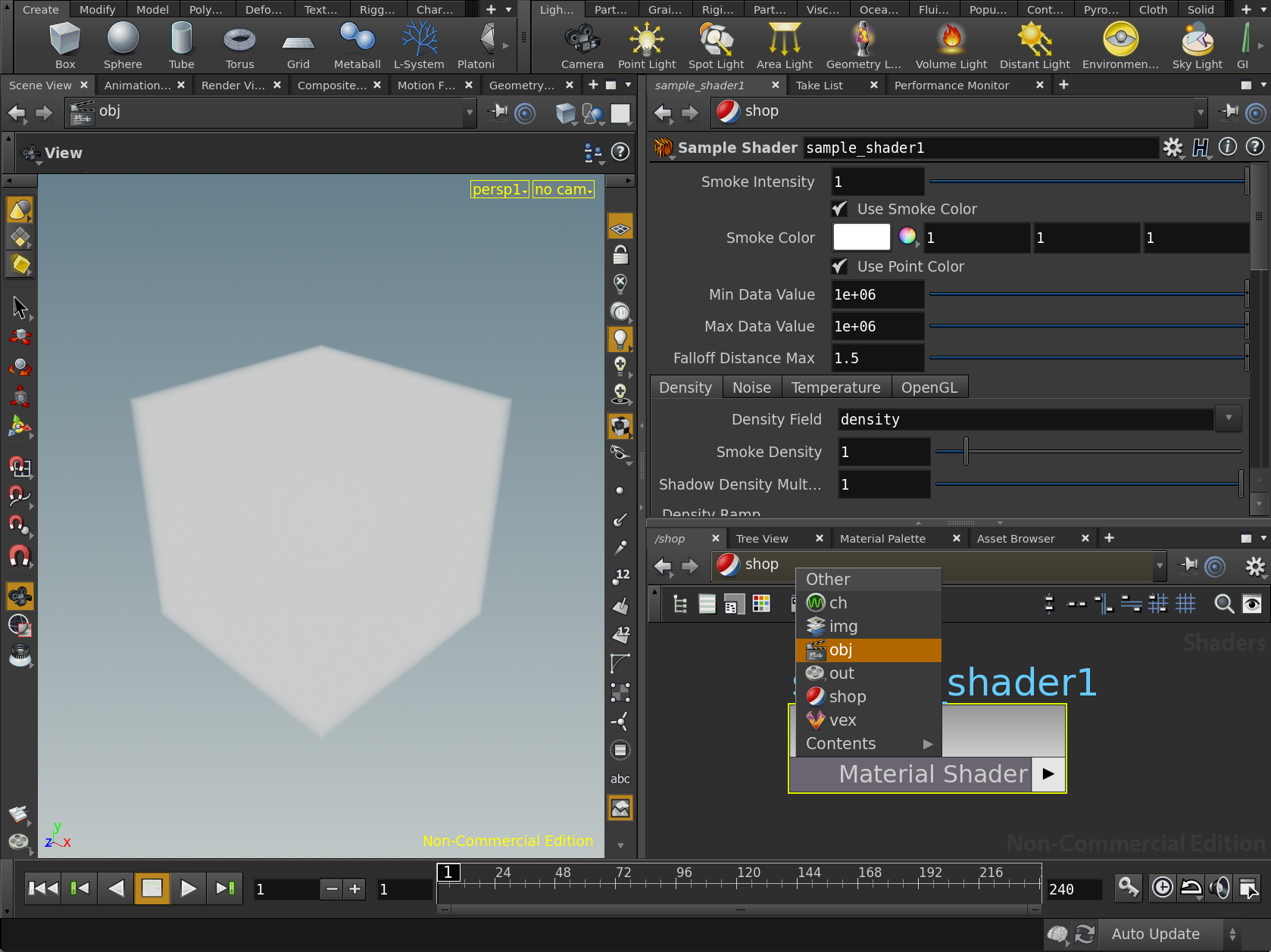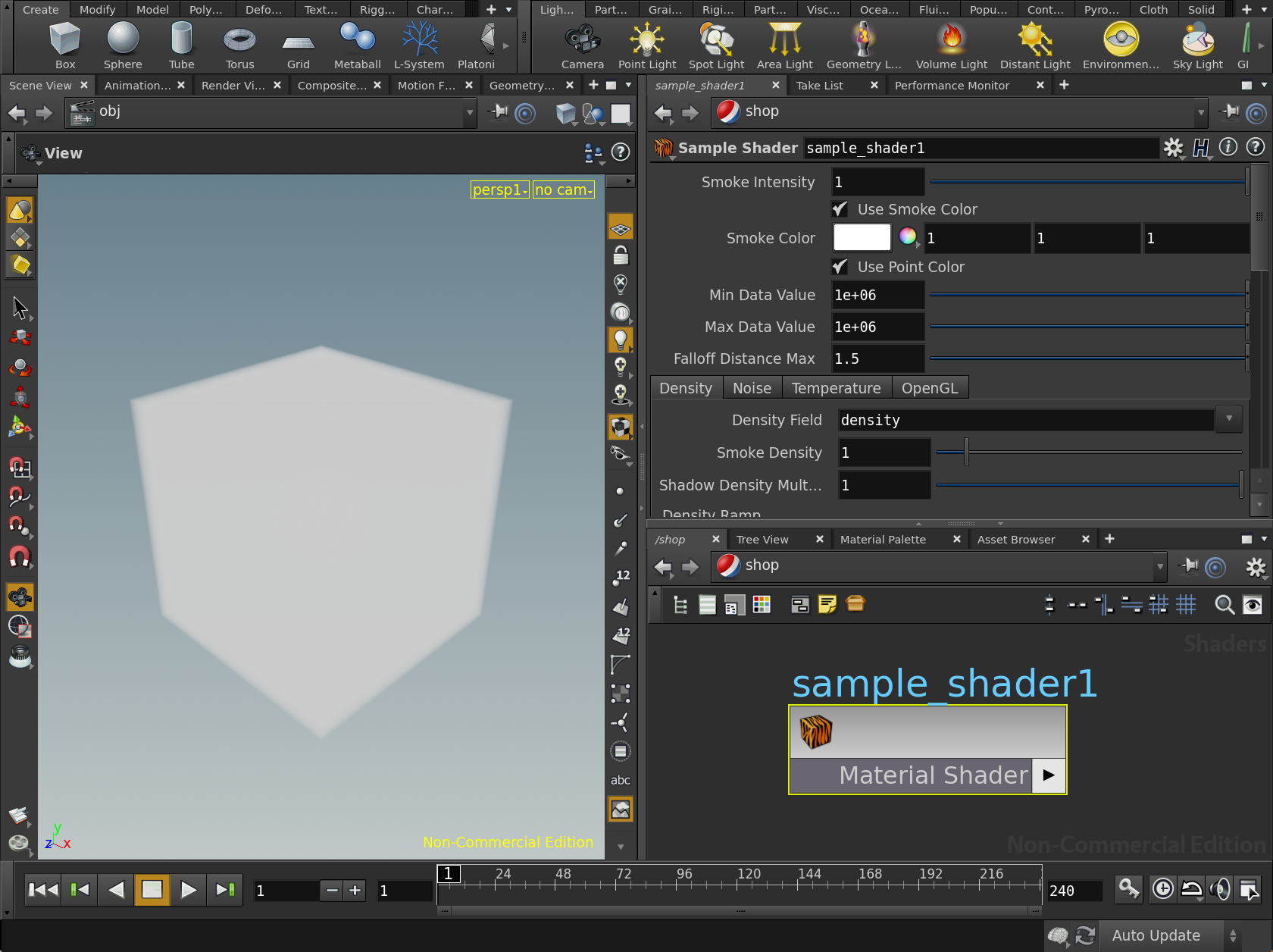 This will have taken you to away from the "obj" (object) Network View, and inte the "shop" (shader operator) Network View. You should now see a node called "sample_shader1".