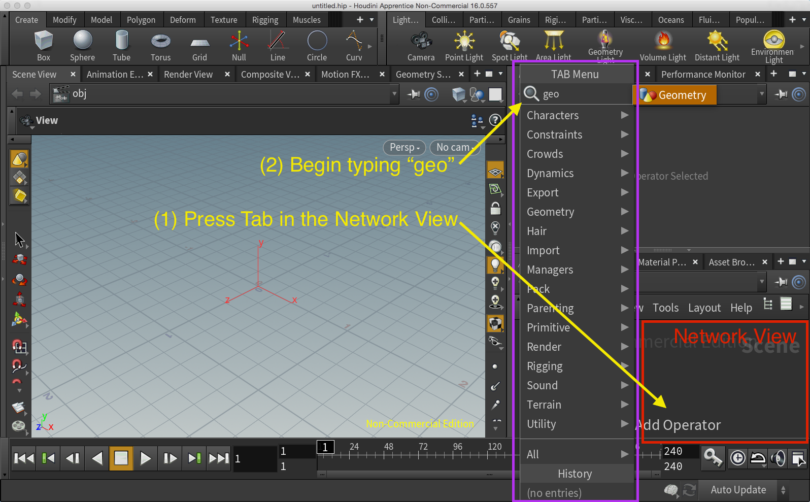 Step 3: Press Enter or double-click on the "geo1" node to step inside it.