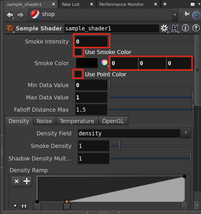 Step 3: Set "Smoke Intensity" to 0, uncheck "Use Smoke Color" and "Use Point Color", and set "Smoke Color" to black by entering 0 0 0 as the R G B values.