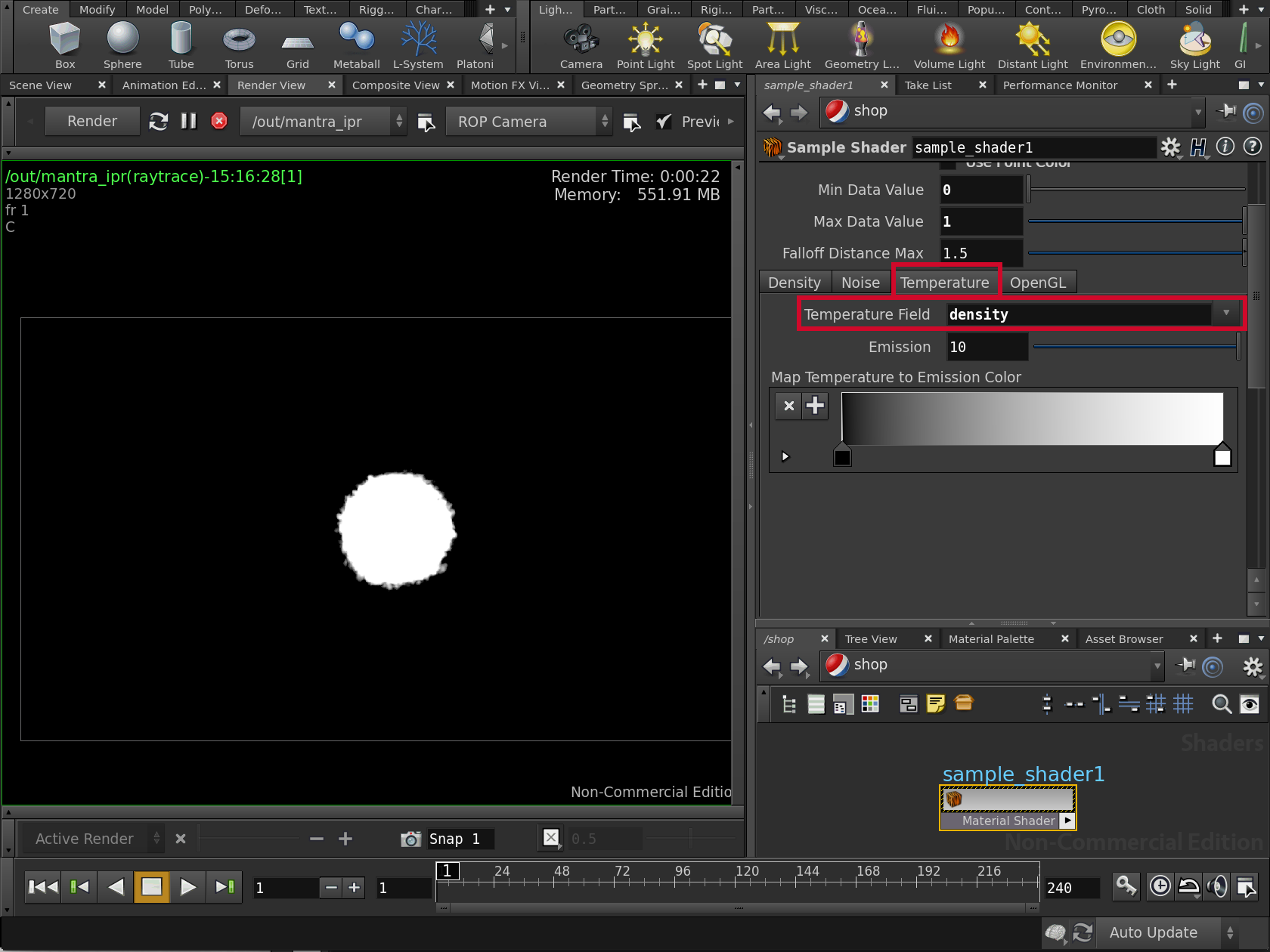 - Double-click on the "Map Temperature to Emission Color" area to create new points with color on this color map. You can move them around or edit them as you like.